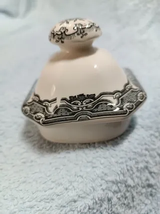 Azucarero con un diseño clásico y elegante, perfecto para añadir un toque de distinción a tu mesa. La cartuja colección negro vista - Decorado con un paisaje detallado en tonos blanco y negro. - Asa y tapa con detalles ornamentales. Medidas: 17,5 x 13 x 11,5 cm Pickman La cartuja de Sevilla