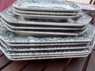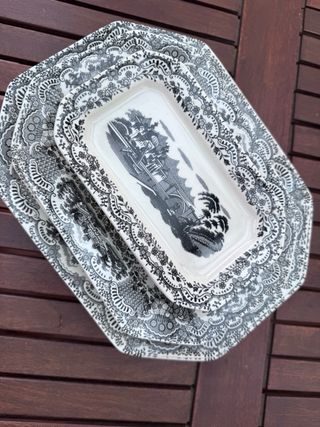 Conjunto de doce fuentes de porcelana con un diseño clásico. - Diseño Negro Vista. - Marca La Cartuja. PREGUNTAR PRECIO Y DISPONIBILIDAD