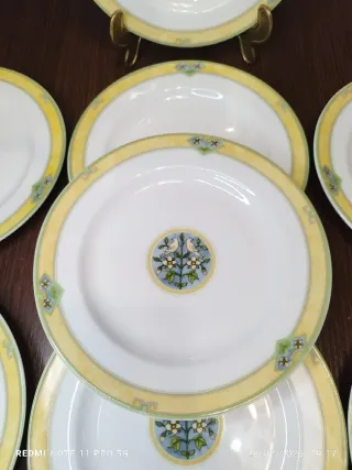 ⚠️NO NEGOCIABLE ⚠️ Conjunto de ocho platos de postre de porcelana francesa con un delicado diseño. - Diseño con motivos de pájaros y flores. - Borde decorado en amarillo y verde. DIAMETRO 19'50 Cm. EN PERFECTO ESTADO. ★★SE HACEN ENVIOS POR WALLAPOP★★ GRACIAS. MUEBLES MESAS SILLAS SILLONES SOFAS DECORACION VAJILLA PORCELANA FRANCESA LIMOGES SARREGUEMINES BAVARIA LA CARTUJA DE SEVILLA COPAS VASOS CRISTAL CHINO CERAMICA CHINA JAPONES TENEDORES CUCHILLOS CUCHARAS COLECCION ANTIGUA ANTIGUO RETRO VINTAGE HOME RUSTICO LAMPARA