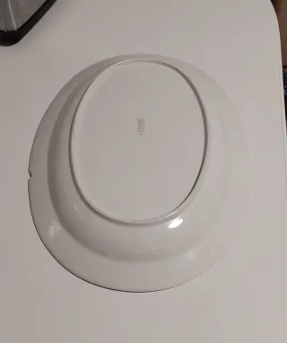 ¿Tienes invitados a cenar y no sabes donde servir el marisco de la ría? La solución puede ser esta bandeja de loza retro. Modelo Chinamoda, de Pontesa. Presenta pequeñas fallas de fabricación y desgastes por uso. Medidas aproximadas: Alto 2,6 cms Largo 37,5 cms Ancho 27,6 cms Las imágenes son parte de la descripción. Más artículos de hogar en mi perfil.