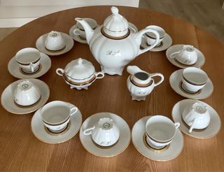 Juego de té Bidasoa porcelana filo de oro.
