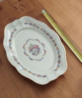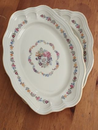 diferentes medidas y diferentes precios fuente ensaladera vintage de porcelana alemana , segunda mano, ,dibujada con motivos florales y borde plateado, muy bien cuidado siempre guardada en vitrina y usada en contadas ocasiones 22.5x14.5 cms 17.50€ 28x19 cms 21.75€ 33.5x22.5 cms 25.85€ 36.5x24 cms 29.95€ tengo mas vajillas en mi perfil, bidasoa, duralex, arcopal porzellan