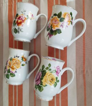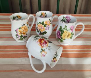 Conjunto de cuatro tazas de porcelana Inglesa colección Gessica,diseño Rosas. Nuevas! Muy bonitas!