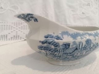 Preciosa salsera antigua de exclusiva colección de porcelana Inglesa Medida 23x9cm.