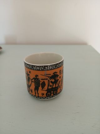 Juego de 6 tazas y platos de porcelana con motivos etruscos o similar.