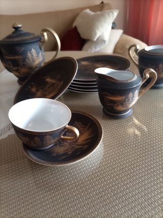 juego de café antiguo de Japón,es de porcelana,tiene 5 tazas con sus platos,cafetera,azucarero,para la leche y 6 platos para dulces o postre,está en perfecto estado a falta solo de una taza.Precio negociable.