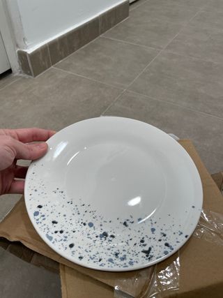 Juego de vajilla de porcelana de la tienda Casa. Incluye 4 tazas, 8 platos llanos, 8 platos hondos y 8 platos de postre. la vajilla ha estado en uso así que tiene detalles de uso que no comprometen en absoluto su utilización (ejemplos visibles en fotos). *uno de los platos de postre tiene un roto, visible en foto, lo compramos así y no lo vimos a tiempo. no se envía. a recoger en mano en Renfe de Las Águilas o Metro Aviación Española. #vajilla #platos #porcelana #vajillagrande #segundamano #segundavida #lasaguilas #aluche #carabanchel #platos #vasos #tazas #casa #piso #muebles #cocina
