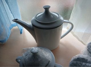 Elegante juego de café de porcelana de la marca Victorio & Lucchino. Incluye tetera, azucarero, lechera, 6 tazas , 6 platos Tengo dos juegos - Diseño clásico con detalles en negro. - Piezas de alta calidad.