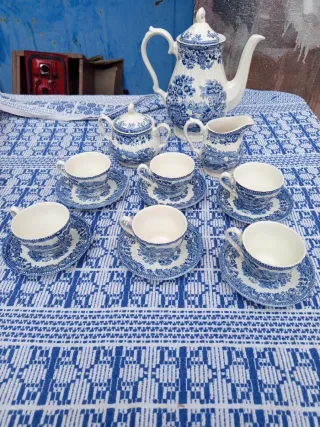 Juego Café Inglés Porcelana Fina Azul/Blanco