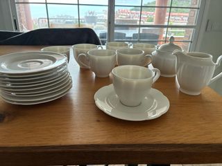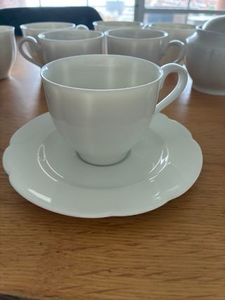 Conjunto de vajilla de porcelana fina de la colección Classic Pearl China de Rosenthal. - Incluye 7 tazas. - Azucarero. - Jarra para leche. Includes: • 7 coffee cups • 11 saucers • 1 sugar bowl • 1 milk jug All pieces are in very good used condition, with no cracks or chips. Light signs of use may be present due to age. Perfect for collectors, vintage lovers, or as an elegant addition to an existing Rosenthal set. From a smoke-free home. Pickup preferred, shipping possible with careful packaging.