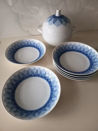 Sopera y seis platos hondos de porcelana Rosenthal diseño de Bjorn Wiinblad. Medidas: sopera alto 19 cm y plato diámetro 20 cm, alto 4,2 cm con bastante capacidad. Tenemos más artículos interesantes. N O HACEMOS ENVÍO DE ESTE ARTÍCULO. Tenemos más artículos interesantes. Porcelana Limoges, Capeans, Villeroy Boch, La Cartuja de Sevilla, figuras Lladró, Nao, Nadal, Algora, Murano, WMF Sevres, maletas cuero grandes antiguas, espejos atemporales antiguos, quinqués antiguos, cerámicas diversas.