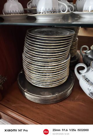 Vajilla de 46 piezas intactas y 8 melladas Son de santa clara vigo y tienen más de 50 años 1 sopera, 5 bandejas diferentes tamaños ? 21 plato grande , 11 platos medianos y 8 platos pequeños entrega en mano oporto no envio Gracias un saludo....