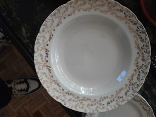 Vajilla de 46 piezas intactas y 8 melladas Son de santa clara vigo y tienen más de 50 años 1 sopera, 5 bandejas diferentes tamaños ? 21 plato grande , 11 platos medianos y 8 platos pequeños entrega en mano oporto no envio Gracias un saludo....