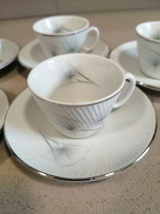 12 tazas + platitos 1 tetera 1 azucarero 1 jarra pequeña