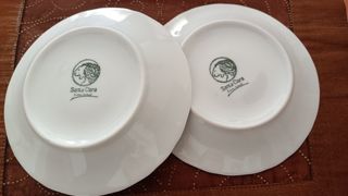 Set de 9 platos de porcelana de la marca Santa Clara. Perfectos para cualquier ocasión. Uno de ellos por detrás tiene un desperfecto pero no se ve. - Diámetro de 20.5 cm.