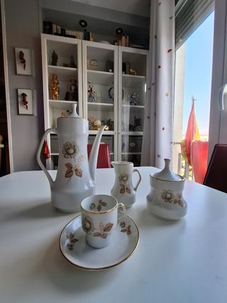 Juego de cafe Santa Clara de porcelana incluye 12 tazas, lechera cafetera y azucarero NO ES NEGOCIABLE ❌️