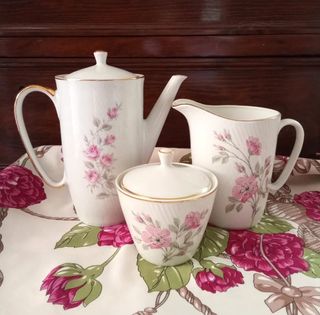 Servicio porcelana Santa Clara, vintage años 60, sellado y en muy buen estado de conservación. Medidas: la lechera 11 cmts alto y 8,5 x 11 cmts la boca, el azucarero 10 cmts altura total, 7 cmts altura sin tapa y 9 cmts diámetro de la boca, la cafetera 17 cmts altura total con tapa, ancho de asa a pico 17,5 cmts y 9 cmts boca. Antigüedades y vintage en mi perfil. #vintage #antiguedadesaños60 #antigüedadesmaravillosas #porcelanavintage #porcelanaantigua #piezasúnicas #tesoros #tesorosvintage #santaclara #regalavintage #anticuario #anciens #antiquités #coffeetime #mesasbonitas #mesasconencanto #tabledecor #coleccionismo