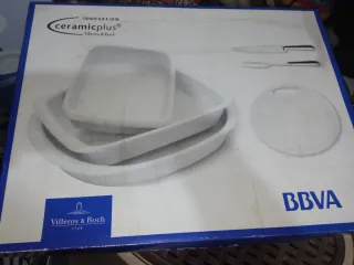 Conjunto de cuatro piezas de Villeroy & Boch. - Diseño elegante en cerámica. - le falta la bandeja grande - De ahí su precio 60€ porque le falta la bandeja grande nada más. - Todo es nuevo - Ver las imágenes forman parte descripción. - NO ES NEGOCIABLE - NO ES NEGOCIABLE.