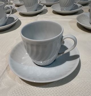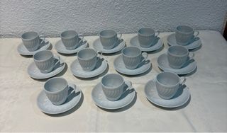 Elegante juego de café Vista Alegre, modelo Sagres, para 12 servicios (compuesto por 12 tazas y 12 platillos). Fabricado en porcelana de alta calidad. - Diseño clásico y refinado. - Apto para lavavajillas. Solamente se han usado una vez y están en excelente estado