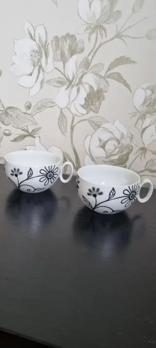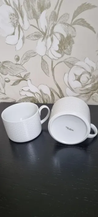 Set de dos tazas de porcelana con un delicado diseño floral.