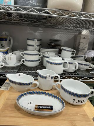 PRECIOS MARCADO EN FOTOS Porcelana portuguesa vista alegre Cremera o pequeña jarra de leche Taza de consomé Pequeña fuente ovalada de porcelana Jarra de leche o cafetera con tapa en porcelana Tienda fisica Calle rocafort 58 al lado del supermercado BON AREA PRECIOS MARCADO EN FOTOS