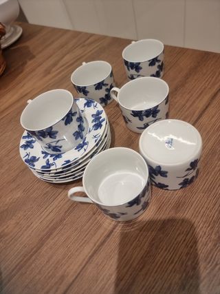 Vajilla Vista Alegre 6 tazas con platos flor azul