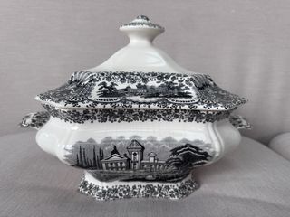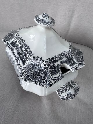 Elegante sopera de porcelana con un diseño clásico. - Patrón Vista Alegre en negro. - Pieza decorativa y funcional.