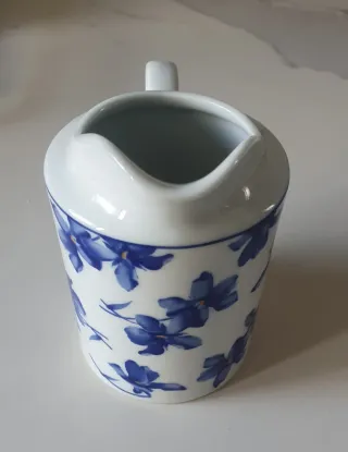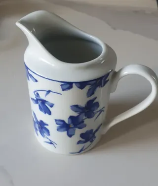 Jarrita para leche de la marca Vista Alegre, con un delicado diseño floral en tonos azules. Casi sin uso.