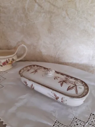 Caja Porcelana Inglesa Antigua 📌 Años 20 ▪︎Se usaba para guardar peines ▪︎Con bonitos dibujos de hojas marrones ▪︎En buen estado, pequeña muesca en tapa ▪︎Ideal para decoración vintage con mucho encanto! 💕 📐 Medidas: Alto: 7 cm cm Largo: 22 cm Ancho: 9 cm HAGO ENVÍOS 📦 📦‼ Más Antigüedades en mi perfil❗ Vajilla duralex, porcelana francesa, luneville, san Claudio, Vista Alegre, decoración vintage, galletero Inglés, ventana Antigua, jarra cristal Tallado, bordador antiguo, tapete India, caja lata francesa, cenicero murano,...