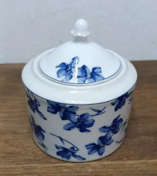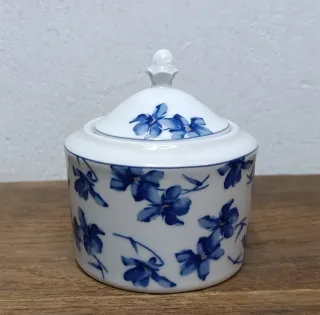AZUCARERO DE PORCELANA VISTA ALEGRE. MUY BONITO CON UN DELICADO DISEÑO FLORAL EN TONOS AZULES. ESTÁ EN PERFECTO ESTADO, NUEVO SIN USO. LAS FOTOS FORMAN PARTE DE LA DESCRIPCIÓN. MIDE 10 CM DE DIÁMETRO POR 12 CM DE ALTURA.