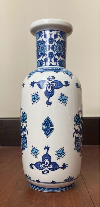 Florero Pequim Izmir. Un raro azulejo de cerámica silícica pintada de Iznik del siglo XVI, que pertenece a la colección permanente de la Fundación Calouste Gulbenkian, sirve de inspiración para la creación de esta vajilla que rinde homenaje al arte de la azulejería en la Turquía otomana. Altura 317 mm Ancho 128 mm Longitud 128 mm