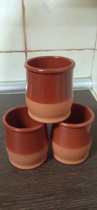 16 vasos, tarros, pucheritos de cerámica vitrificada 7cm alto y 8cm diametro Ideales para postres, caldos, ... Aptos para uso alimentario
