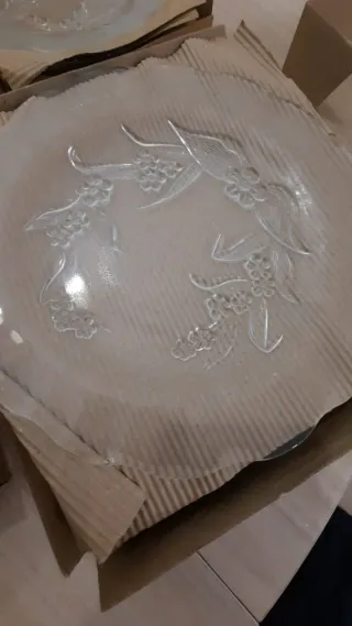 Se venden 24 platos de vidrio, 12 planos y 12 hondos. Son transparentes y tienen un diseño delicado. - Ideales para uso diario o eventos. - Se encuentran en buen estado. - Perfectos para cualquier ocasión.