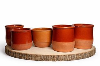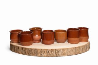 Conjunto de 60 vasos de barro, ideales para preparar postres caseros como cuajadas, natillas o yogures. - Material: terracota. - Color: beige y marrón.