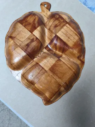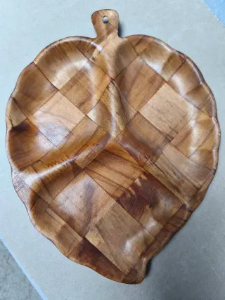 Bandeja de madera con diseño de hoja
