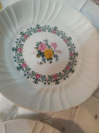 Preciosa y original vajilla se compone de 12 platos llanos 12 hondos 12 de postre y 6 tazas no tiene ningún signo de desgaste está sin estrenar.