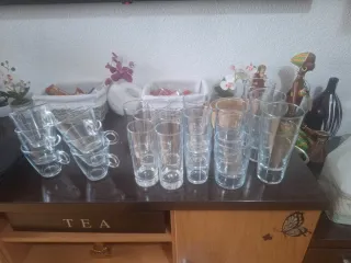 Conjunto de vasos de cristal, ideales para hostelería o uso diario. - Diseño transparente y elegante. - Material de vidrio resistente.