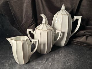 Set de té porcelana blanco y oro estilo art deco