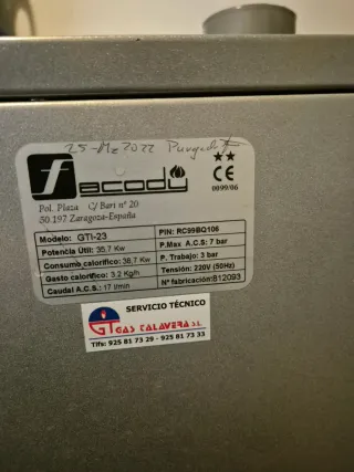 Vendo caldera Fondital Delfis CTFS 24 de gas natural. La caldera funciona perfectamente a nivel electrónico y de combustión, pero tiene una pequeña fuga de agua en el depósito/vaso de expansión. Ideal para quien sepa repararla o para piezas (el resto de componentes están impecables). Modelo: Mixta (Calefacción y Agua Caliente). Potencia: 24 kW. Estado: Muy cuidada exteriormente, con todas sus revisiones. Se vende tal cual para reparar o despiece. Recogida en mano.