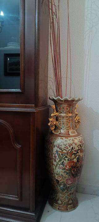 Jarrón chino cerámica madera multicolor