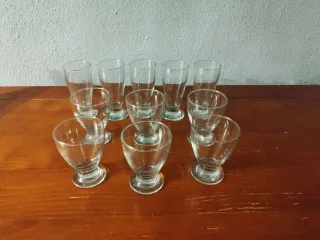 Conjunto de vasos pequeños. - Diseño moderno y elegante. - Ideales para chupitos o licores. 14 vasos se entrega en parla