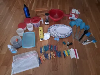 Conjunto de varios utensilios de cocina y accesorios. - piedra de afilar. NO - 3 bandejas - pinzas ropa y pinzas bolsas - tapones para botellas.de vino y sidra - salero - coladores 3 tamaños - vasos medidores - 2 rejillas para ropa delicada lavadora - 2 recipientes IKEA - esprimidor, medidor CURVER - botella de agua metálica - servilletero de madera - decantador de vino - colador - fundie de chocolate - útiles varios de cocina - Regalo tuper, tarrina cd's, cargador usb de coche y gel hidroalcohólico frutal. En mi perfil los puedes encontrarlos individuales. Ahorrarás tiempo y dinero. Todo lo de la últtima foto también lo regal