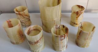 juego de 5 piezas vasos decorados árabes 30 años antigüedad procedentes de marruecos nunca usados no son imitación son originales comprados en Marruecos