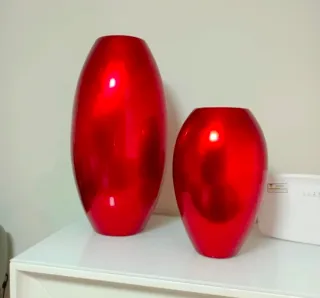 Elegante jarrón de gran tamaño con un acabado brillante y llamativo. Su forma ovalada y su vibrante color lo convierten en una pieza decorativa destacada. - Altura: 56 cm - Acabado: Brillante - Color: Rojo intenso