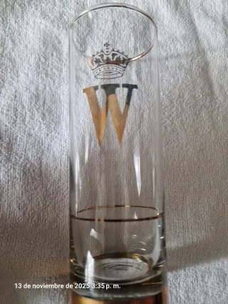 Elegantes vasos de tubo con un diseño distintivo. - Detalle de corona y letra 'W' en dorado. - Dos finas líneas doradas decoran la parte inferior. - Base dorada. -6 unidades