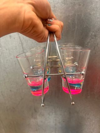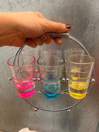 Juego 6 vasos chupito colores con soporte