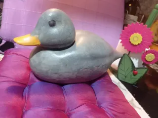 Figura decorativa de pato, ideal para añadir un toque encantador a cualquier espacio. - Hecho de cerámica. - Acabado en color gris con detalles en amarillo. - mide 29x13 cm