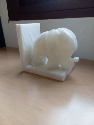 Este sujetalibro tiene forma de elefante y libro. Es ideal para decorar tu estantería. - Hechos de mármol blanco. Tiene unas pequeñas rozadura ( ver en foto) Precio negociable Medidas: 17 x 13,5x 10