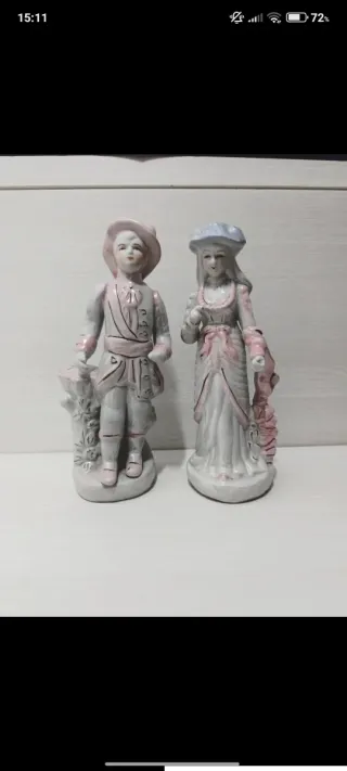Preciosa pareja de figuras de porcelana con un diseño vintage y detalles en rosa. -En perfecto estado. - Figuras de estilo clásico. - Acabado brillante.