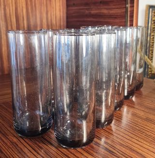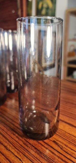 Vintage - Decoración - Cristal y Vidrio 10 vasos tubo Per Lütken ahumados modelo Canadá, diseñados por Per Lütken en 1950 y producidos por la fábrica de vidrio Kastrup-Holmegaard en el período 1955-1970 en Dinamarca. Suministradores de la Casa Real Danesa. 2024-DEC0585